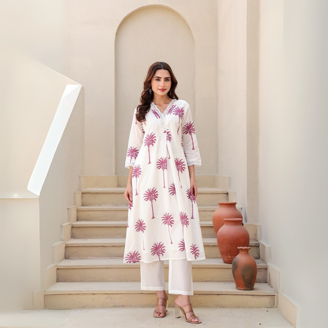 Fusion Printed Straight Kurta with Embellishments & Short Kurti Style ā Stylish Cotton Blend for Casual & Formal Wear | KS-33
