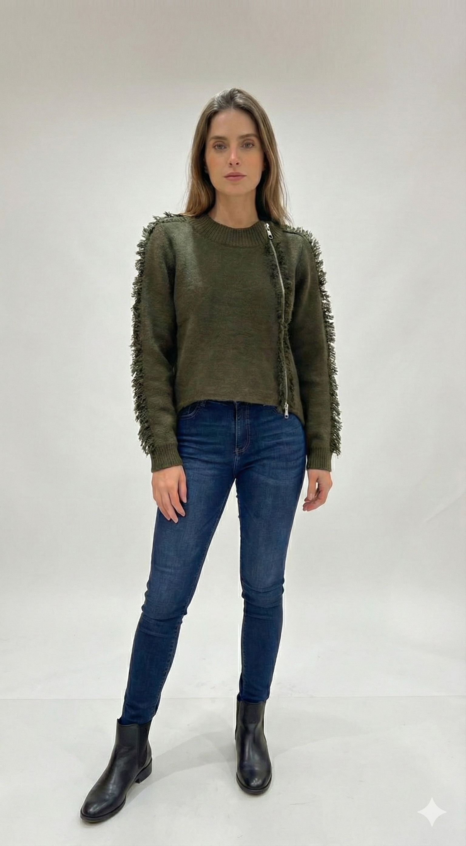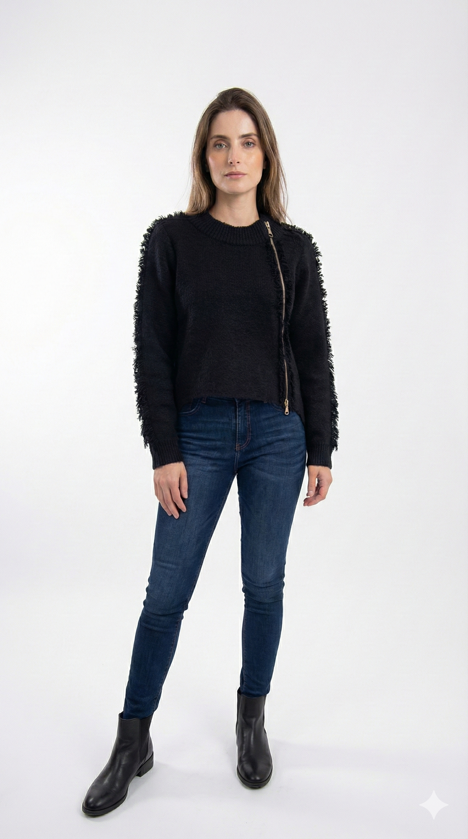 Texture meets hardware in the Chambord Zipper Sweater. Featuring sleeve fringe details and a signature asymmetrical zipper, this knit brings a unique twist to your cold-weather wardrobe.