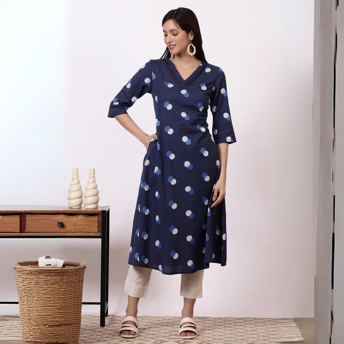 Blue Floral Printed Straight Cotton Kurta – Comfortable & Chic | KS-40