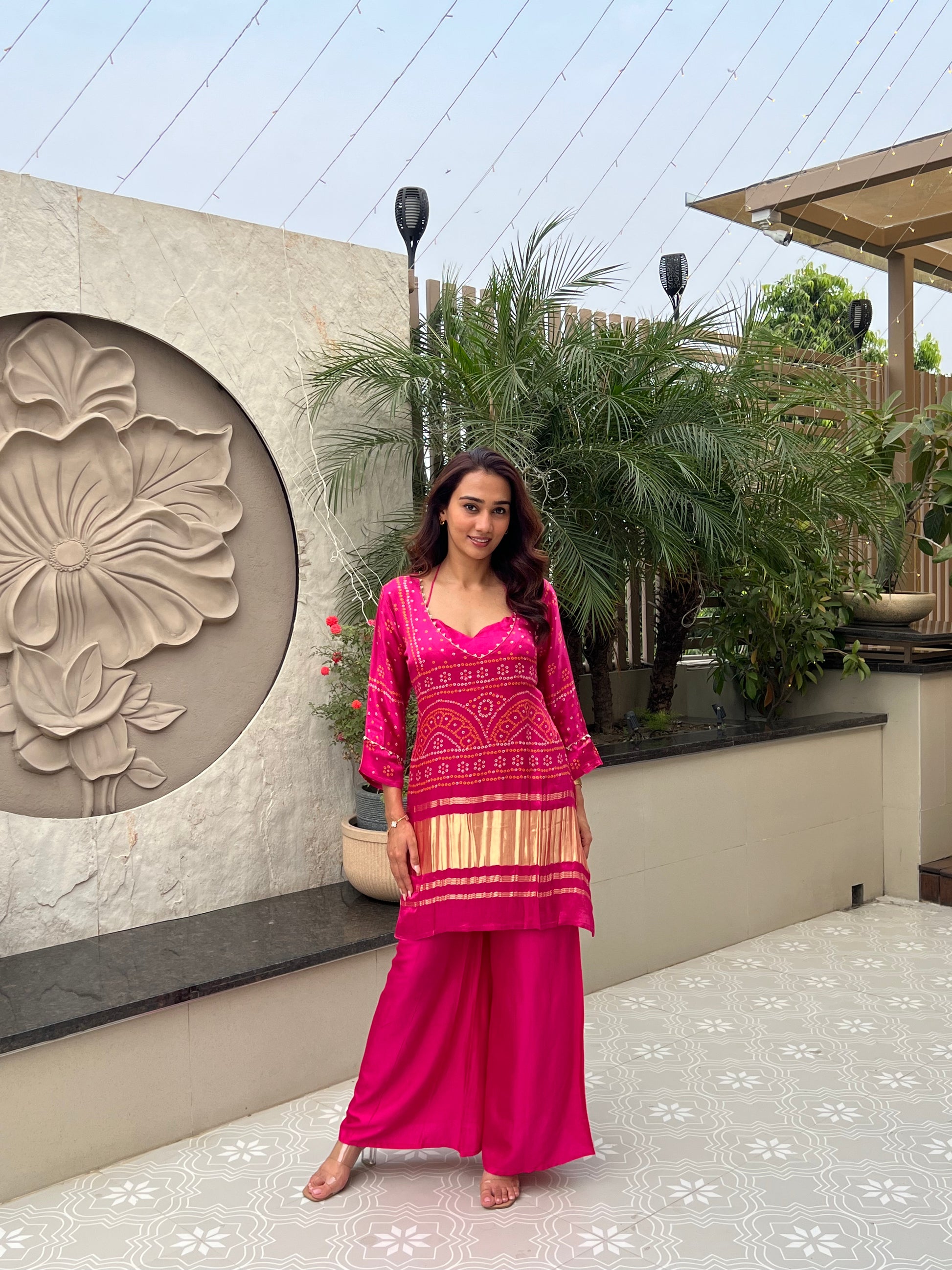 Rendered in a striking fuchsia pink hue with rich golden accents, this set perfectly balances tradition and contemporary allure — ideal for weddings, festive soirées, or pre-wedding celebrations.
