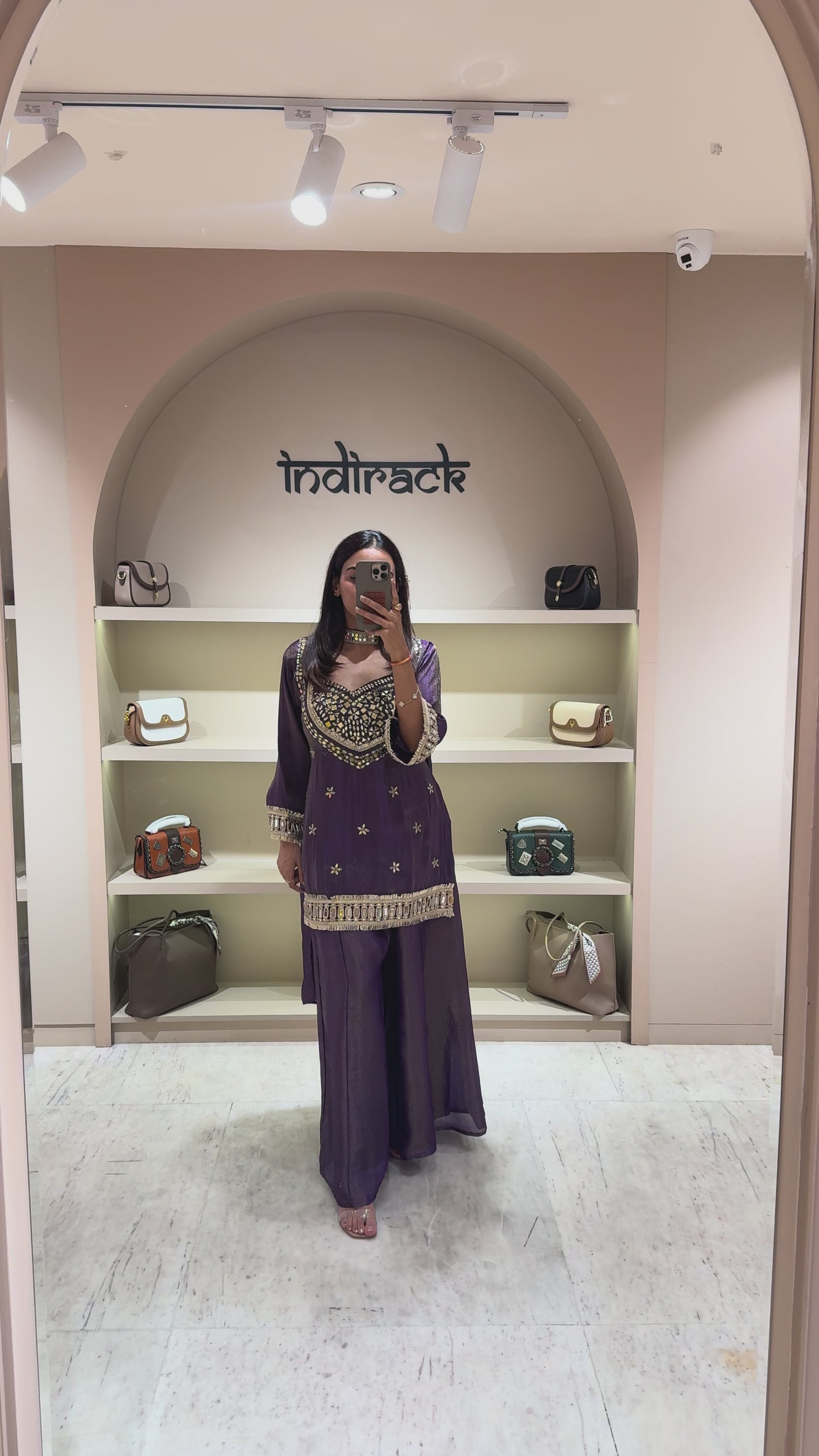 The Ziba Mirror Embroidered Suit is a timeless blend of grace and grandeur. Crafted in a luxurious ivory fabric, this ensemble is adorned with intricate mirror work and golden thread embroidery that add a radiant touch. The kurta features a beautifully embellished neckline, flared sleeves with ornate borders, and a statement hemline with dazzling mirror detailing. Paired with wide-leg bottoms and a matching dupatta, this suit exudes understated elegance, perfect for festive celebrations, weddings, or evening occasions.